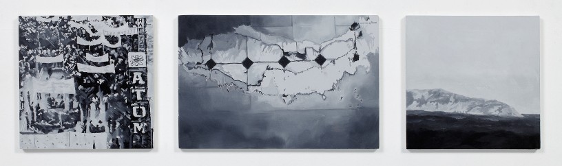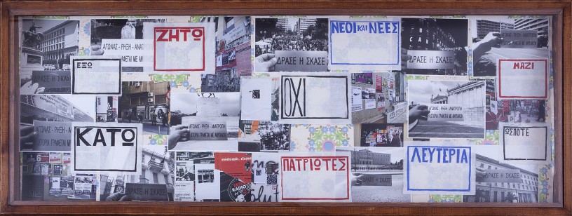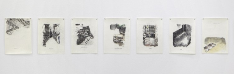 Eirene Efstathiou presents a series of works within different media; paintings, woodcuts, collages and drawings made in 2011. Her latest work is in continuation to her research on collective memory and the way history and contemporary events are conceived through images and the press. Efstathiou’s drawings present details of interiors from state services in Athens, based on images that the artist herself has taken. “Field Dispatch from the Earnest Cartographer”, is a site research on the institutions that are to be disputed by the current protests. All woodcuts and the table collage are made of photographs and compose a work titled “Proposals for Alternative Message Delivery”, in which, as happens with the paintings of the exhibition Alternate Geographies 1 and Alternate Geographies 2, Efstathiou is undertaking the period of junta, but also contemporary events, in order to examine recent Greek history and deal with notions of resistance, collective life, personal consciousness and other.