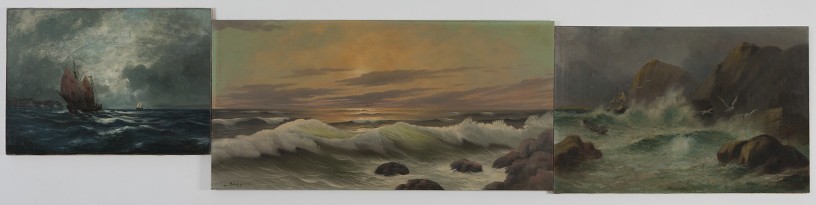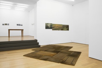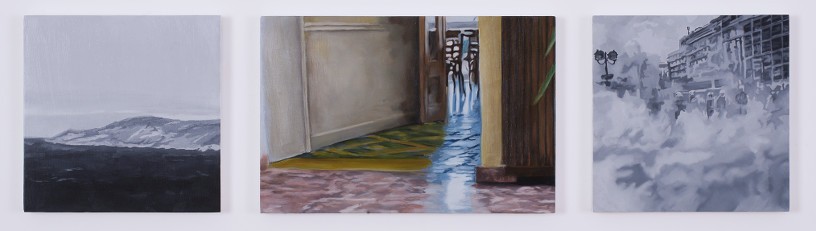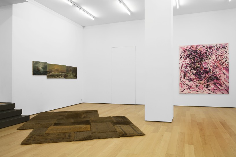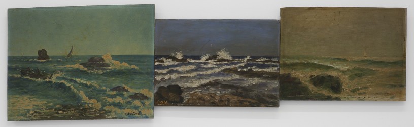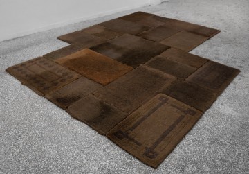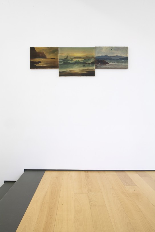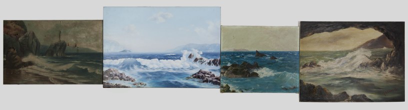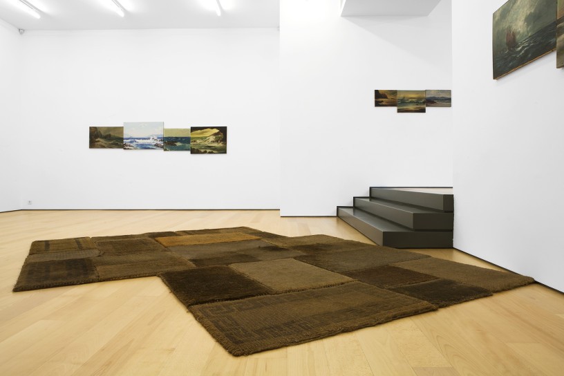 Eftihis Patsourakis will present a series of peculiar collages on the floor and on the wall. “Skin” is the result of an assembly of rugs taken from house entrances, which carry their own traces of friction from everyday life. The work exists between public and private space and portrays a daily ritual, connected to the notions of purification and collectivity. Horizons are made of seascapes from unknown and anonymous painters. Placing these seascapes one next to the other, results to an artificially common and continuous horizon. These works pay tribute to the routes of all these non-recognized from the official art history artists. These routes are discussed through the depiction of the sea, the waves and the threatening horizons. Also, these works becomes a “group show” in a peculiar way, reflecting on the concepts of desire, commingling and failure.