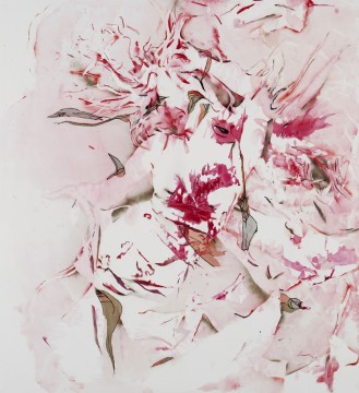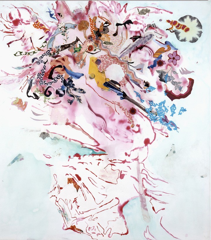 In her work, Lila Polenaki composes vibrant colorful images with acrylics, fabric and the materials and icons used for her collages. Having refined collage technically, a large range of materials are incorporated in her canvases. Floral motifs on fabric, lace, curtains, sheet as well as printed paper, books from childrens books, tissues, sewing patters, letters, personal notes. The artist allows these elements to become the materials of her work, a vernacular iconic vocabulary which is the inspiration to never-ending effort to describe the body, memory and all these passions which relate to female subjectivity. The artist’s painterly surfaces direct roles and postures of the female substance in relation to history and the cosmos.