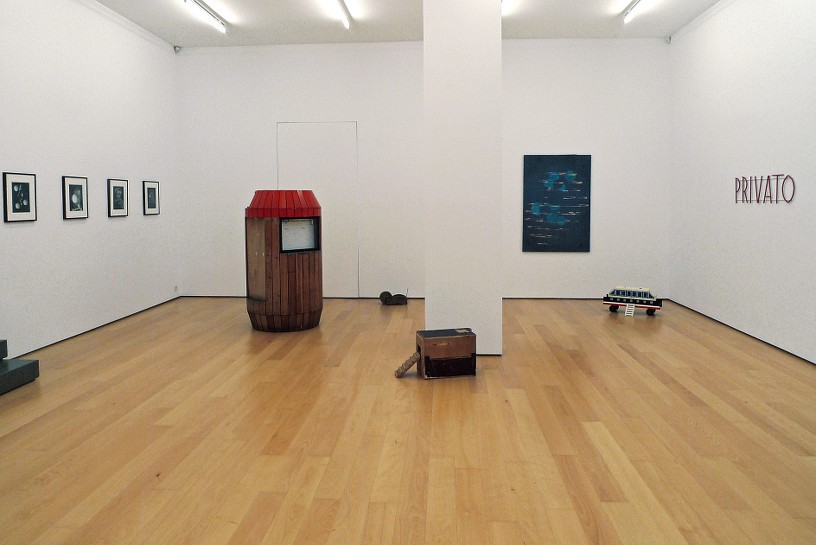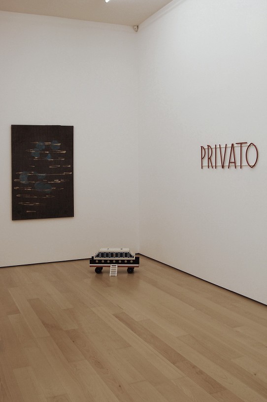 Manfred Pernice could be called a memorialist of the forgettable. Pernice keeps the biographical information to a minimum, while grounding his forms in architectural motifs usually consigned to the margins of our attention. The sculptures on the platforms recall concrete balusters shifted off their axiss and planters faceted with lacquered clipboard. Moreover, they echo he socles of Brancusi, had they been relegated to city plazas; like Brancusi’s Pernice’s plinths platform, which resembles a stage for an open-air theatre, they become the antic performers of their own ‘supporting’ roles.