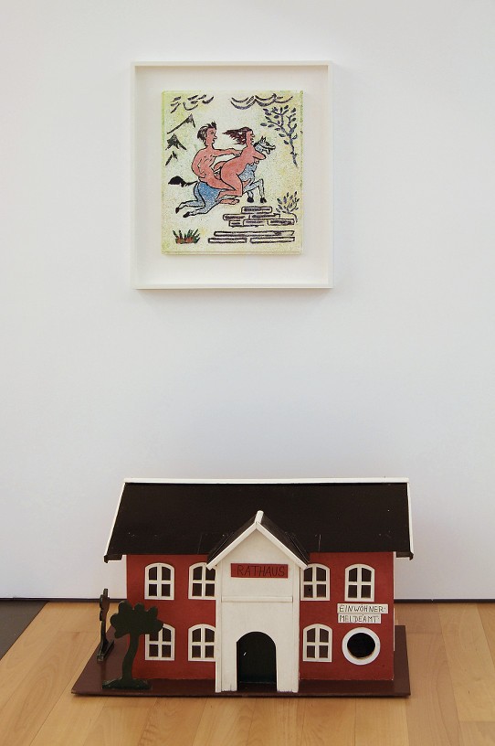 Andreas Slominski’s artworks are traps for the metaphysically infected eye. The aesthetic is the lure, but a work of art success is marked by its ability to interrupt and detain the viewer. Slominski’s works pivot on a smart reversal of expectations that upsets his audience’s stable footing. At their best, they perform a pantomime existentialism, not unlike Fischli and Weiss’ philosophical musings in the guise of a bear and a rat. Cloaked in slapstick humour and absurd exaggeration, they trick us into total engagement before whacking us with their real preoccupations: life love, luck, death, survival.
