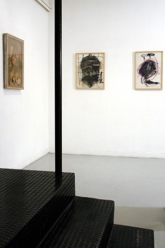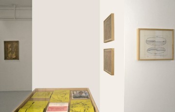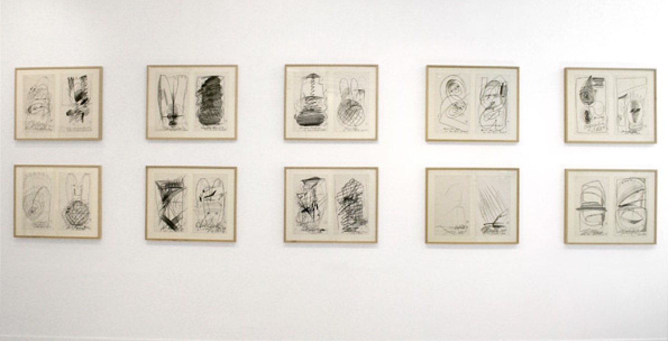 The present exhibition will show some graphics and drawings of Dieter Roth in collaboration with Arnulf Rainer, and a chocolate box with the title “Grosses Taschenzimmer”, three books published by him with the titles “Bata/Dogs”, “scheisse Buecher”, “Frische Scheisse”. The artist has produced from 1947 until 1998 528 graphics, like lithographs, copper engravings, wood engravings etc. In this part of his work he is using food materials like chocolate and cheese. Many graphics are supposed to be unique, as long as other materials are included in the printing.