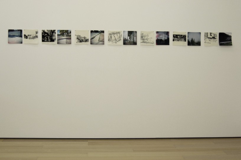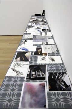 In the present exhibition Iera Odos/ Revisited Eirene Efstathiou presents a series of works in various media, which include paintings and archives of photographs, drawings and audio documents. The works in the exhibition emerged from a series of wanderings and the ‘residence” of Eirene Efstathiou in the public space of Iera Odos. She did not choose the specific road by chance but rather was intrigued by the possibility of the kinds of traces that might be visible along this sacred way, suffused such as it is with history and lore. Following a situationist cartographic practice, Efstathiou describes her encounters with the street Iera Odo as a type of inhabiting because this implies a kind of intimacy with the place. As her map she chose two works from the middle 60’s America – Thomas Pynchon’s novel The Crying of Lot 49 and Bob Dylan’s album Highway 61 Revisited, which describe a space suffused with late 60’s America but not corresponding to any real geography. Using these works as ‘maps’ allowed her to view the historical circumstances of the road as ‘pure paranoia,’ as a distorted reality that may never have existed. As an earnest cartographer on Iera Odo, her intention was to trace ruin and make a map of fissures.