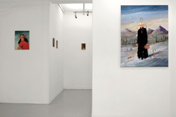 The paintings included in the current exhibition reveal Condo’s keen interest and examination of societal impact upon the cast of characters assembled here; from the pathos of the single female marionette-type figure in the Reclining Woman Dream to his subversive American Gothic-like portrayal of the family in The Stockbroker. In both instances, as in the case of the Philosopher, Condo’s subversion of the traditional approach to the portrait combines his ongoing fascination with the inherent plasticity of paint itself, together with a masterly sense of dramatic composition. The theatre that unfolds, however, belies the artist’s interest solely in the external, for Condo’s portraits rely heavily upon the revelatory nature of something far more disturbing and deeply rooted in the private domain of his subjects.