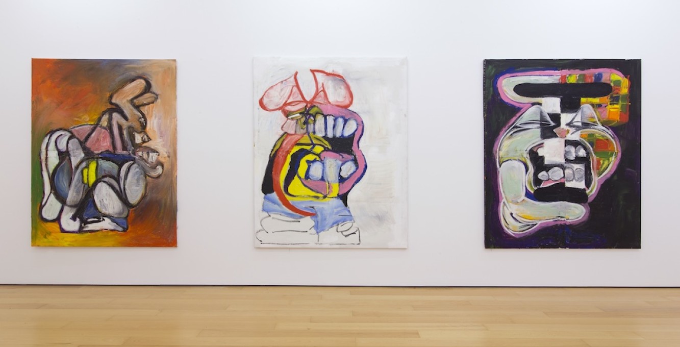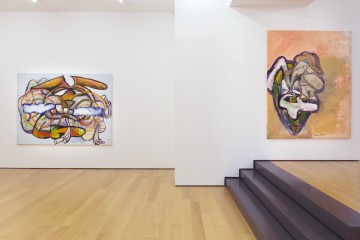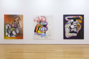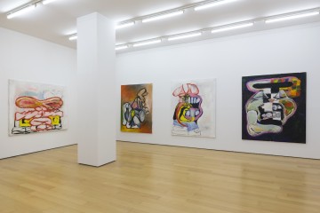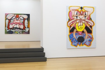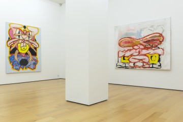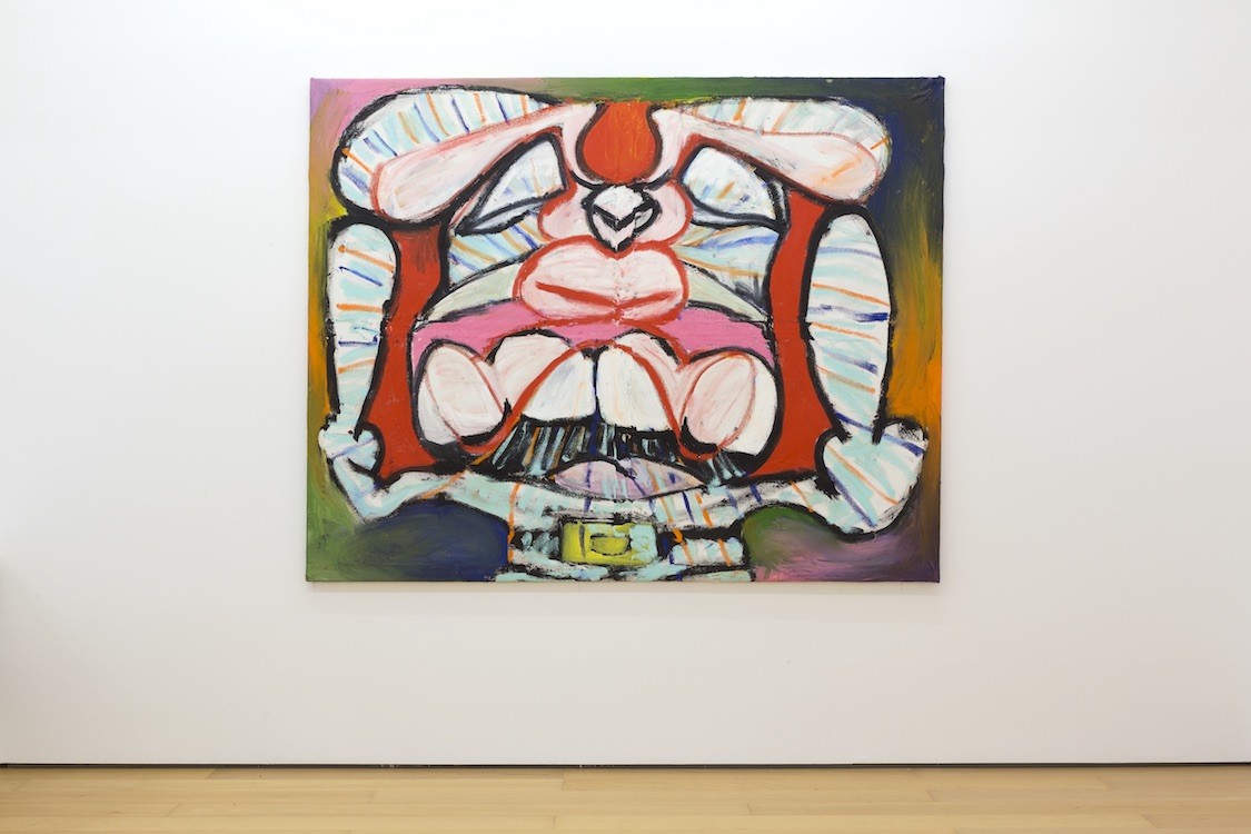 His expressive paintings can be considered as a psycho-geographic memoir of abstract shapes of places and spaces that inhabit both his conscious and unconscious. Being a self-taught, Floratos has created his own painterly world and aesthetics incorporating various elements derived from his immediate surroundings and encounters of life in the big city. The ecosystem of people, the constant movement, New York street art, cartoons, television, dance, folk and contemporary art he discovered, through books, museum visits and the internet, all constitute his inspiration tank. The artist is using curved lines in heavy colored oil paint and bold brushstrokes to depict his autobiographical characters that emerge in his works. Uncanny cartoons and animal-like creatures in irregular forms, resembling mostly rabbits and enlarged bunnies reside on his canvases and are perceived to be the artist’s alter-ego. Also presented in the show is a new series of works on paper.
