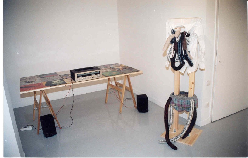After each lecture, the objects that he has used are left on stage creating a theatre-collage. His lectures are various and many times he uses amateur actors. At his last performances there is an old recorder that plays pop or classical music. His lectures are videotaped and incorporated in the Installation for the full length of the exhibition.