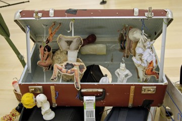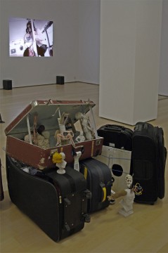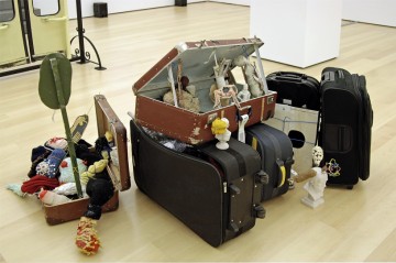 In his lectures Bock combines speech, dramatic elements with these everyday objects, which are transformed into sculptures. His performances are various and most of the time he uses amateur actors. After each lecture, the objects that he has used are left on stage creating a theatre-collage. The language he uses is not very clear, it is a mutation language that flows on the sculptures. The sculptures as objects are more relicts, vehicles, instruments, which try to combine the artist with the audience and the outside world. This auction comes from a personal utopia of the artist who wants to share it with the audience, hoping that this utopia will influence it. Significant role in the work of Bock plays this interactive connection with the public