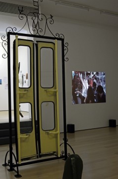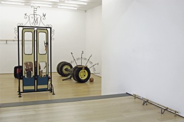 The current exhibition with the title “No Time No Screws” presents the new installation work of John Bock, which consists of transformed parts of a bus. These refer to a lecture-performance that Bock did in a city bus, invited by XYZ last October, traveling through the streets downtown Athens. The video, documenting the performance, is also central part of the show.