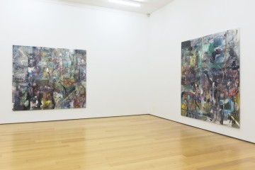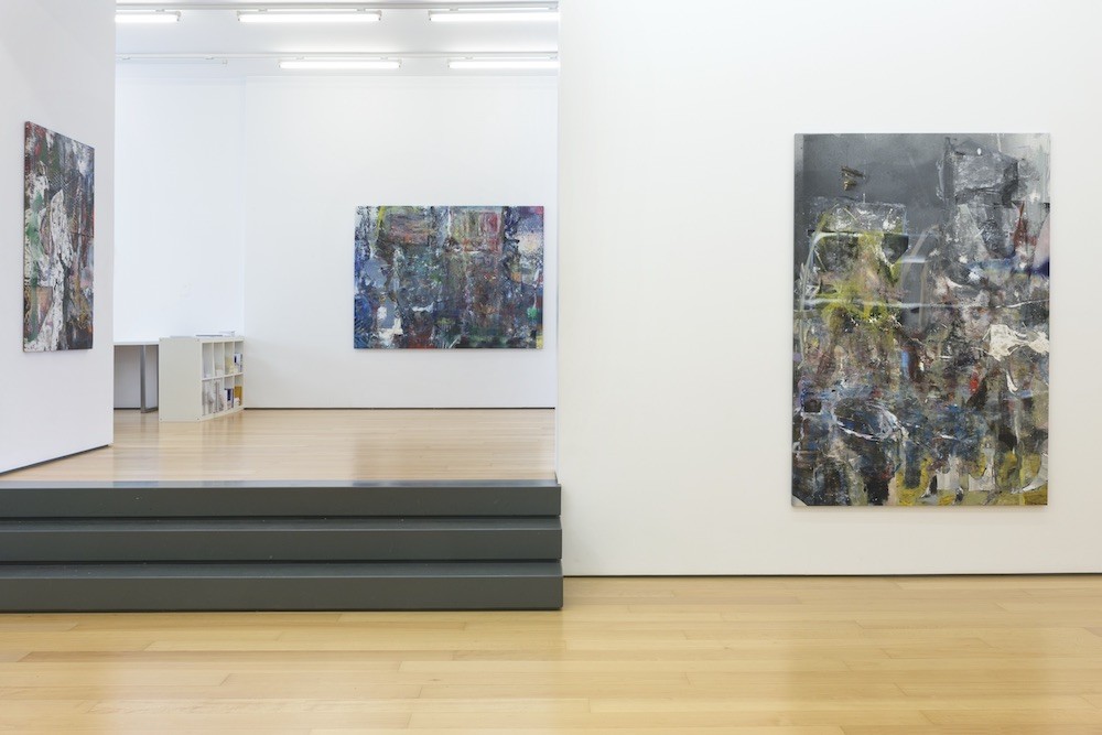 By allowing the physical content, immediate environment and architectural layout of the studio to articulate the direction in which to practice, Everett is negating the temptation of his own ideas. Instead the paintings are absorbed by the workspace and the practice itself. This process repeats itself continuously, becoming reciprocal so that the paintings are generated out of practice rather than from a conceptual premise. Void of narrative, subject matter or reference as a point of departure, the paintings therefore function strictly as a platform in which the focus is to remain acutely aware of the present.