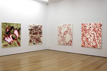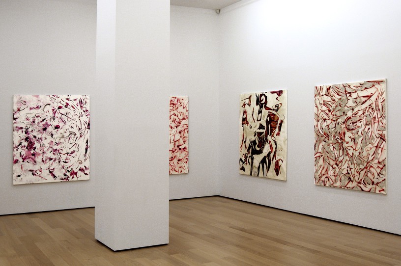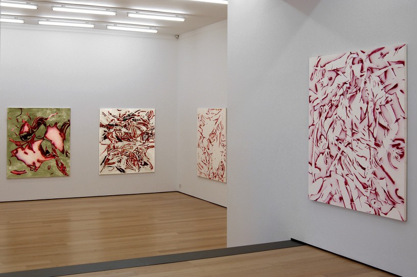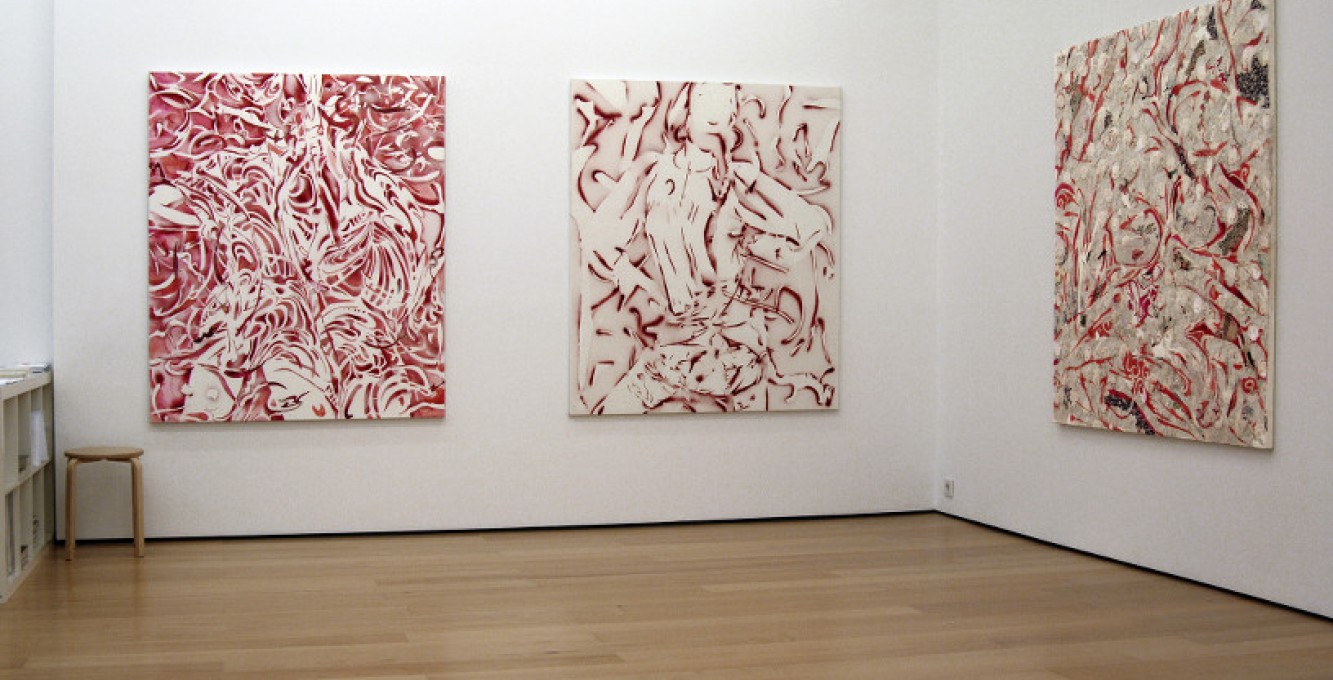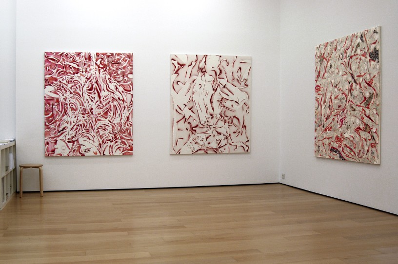 Shadows, cut outlines, traces, leftovers from female bodies/alter egos of the creator, are dissected and reconstructed on the painted surface in a continuous effort to handle their substance and memory.