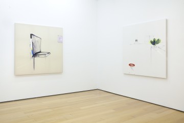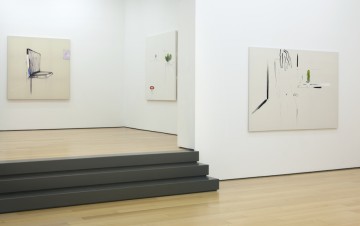 Panos Papadopoulos work is a mixture of conceptual, minimal, abstract and expressionist art. Departing from his earlier works – text-populated, noisy, post punk abstract oil paintings –, Papadopoulos here allows space to emerge, creating interiors and replacing the text with objects; yet the objects still hold on to their linguistic potency, often acting as symbols of language. It is the empty space, the sound of silence that adds tension to these objects. Basically, he turns drawings into paintings, leaving the viewer with the impression of the absent, the incomplete, the unfinished. Is their appearance deceiving; is there more than meets the eye?