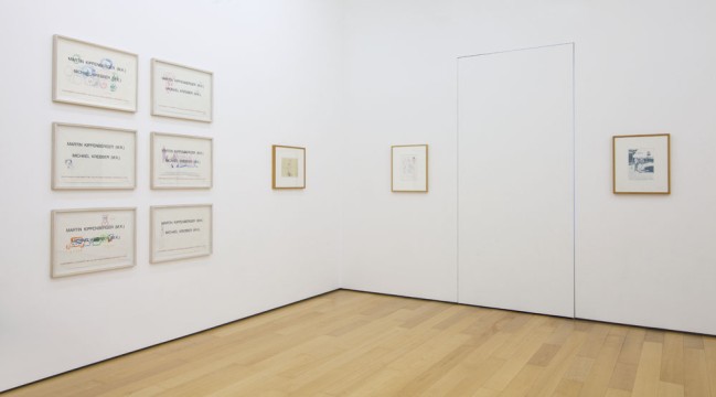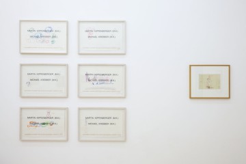 The work of Martin Kippenberger with a Dadaistic humour, irony and sarcasm refers to the contradictions of our society, including social and cultural systems, while often putting himself in the centre. His subjects are related to the banalities of life, politics, media and advertising. An integral part of his work are the hotel drawings, some of which are presented in this exhibition. Kippenberger throughout the course of his artistic practice used to make drawings on hotel letterheads. These specific works function as a travel diary of the artist as he was traveling frequently and therefore staying in various hotels.
