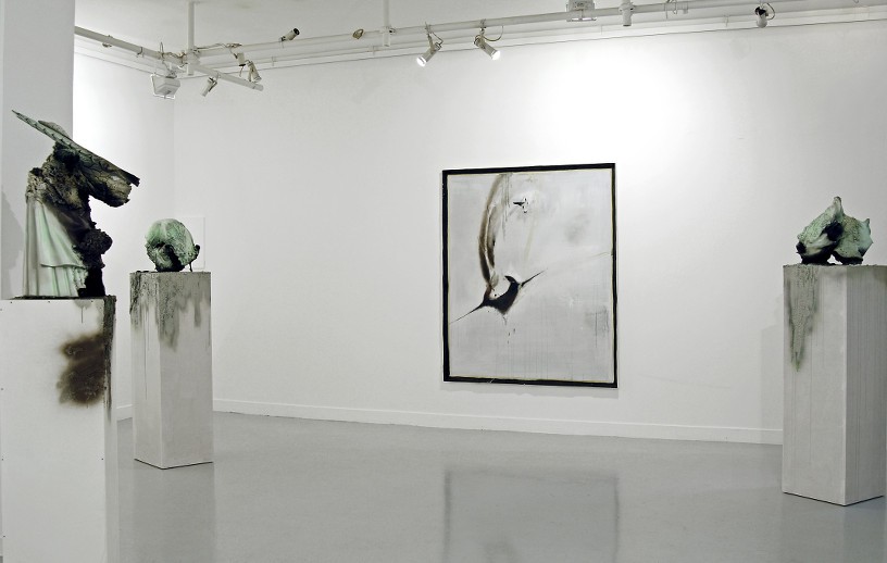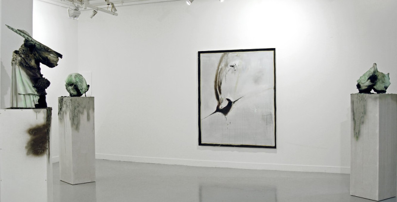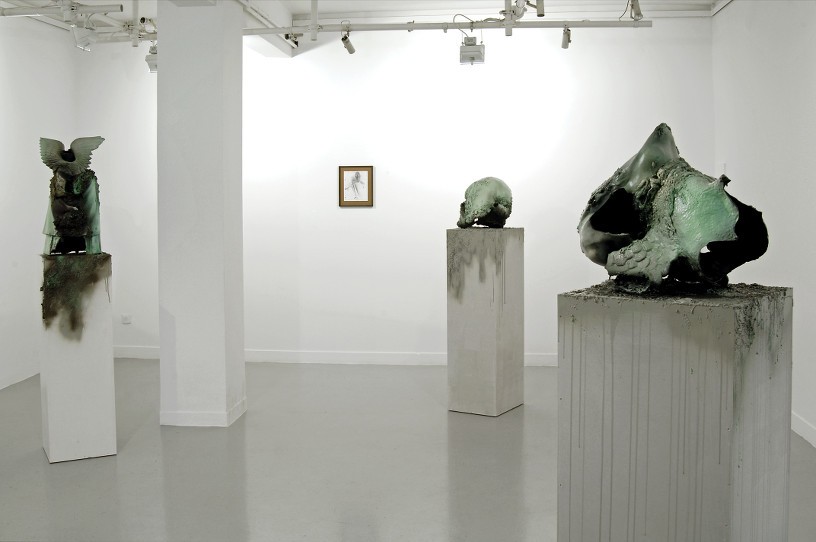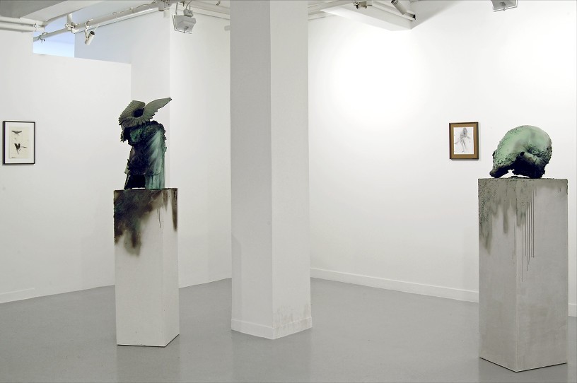 Thomas Helbg works in several disciplines, primarily drawing, painting and sculpture. Victory and defeat, violence, as well as apocalyptic demise are all references present in his sculptures. Searching flea markets, the artist finds figurines and discarded lawn ornaments such as Greek nudes, gnomes, animals and other objects which he fragment, contort and transforms into biomorphic abstractions. Helbig breathes a new life into the objects by giving them rebirth as completely unique objects. Brutal in appearance, these mutated, biomorphic shapes are at the same time strangely beguiling.
