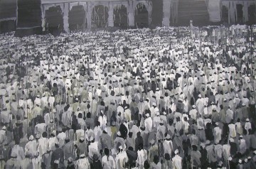 Yuzheng Cheng calls a series of paintings “Landscapes” in which he has a critical look at mass media’s images of the wars in Afganistan and Iraq. Without giving a definite judgment his works are about the understanding of these images from a painter’s point of view. He assembles and spreads wide panoramas or tightens the composition in a single motif. Against the common pictures of war Cheng sets up the irritating frightlessness of calm and fair painting. Mostly his landscapes are painted with a top view. In Chinese painting this peculiar viewing from a higher point is called “ flat distance” that puts the beholder in a elementary way in front of the painting. For the smaller works frontality and exemptness of the motifs take over this function. The pictures are painted harshly and combine Asian set-up with European gesture. The figures are painted without face that might be reminiscent of a sentence by the artist Kuo Hsi (1020-1090): “Far away people have no eyes”.